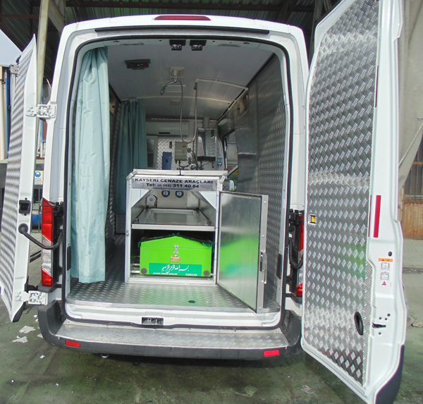 Balıkesir ili Dursunbey İlçesi Dursunbey Belediyesine 2014 model Ford Transit 350 E Van Klimalı Cenaze Yıkama ve Nakil Aracı Kısa sürede Kayseri Cenaze Araçları tarafından yapılarak teslim edilmiştir.