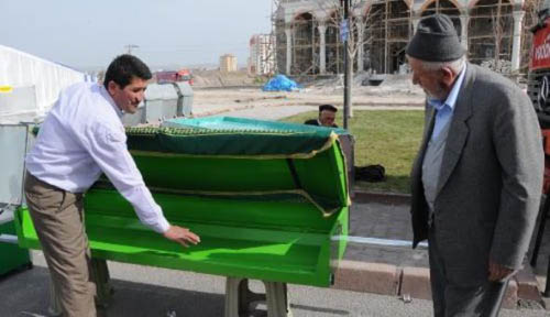 "Tahtadan yapılan tabutlar 50- 70 kilo arasında geliyor ve taşıması zor oluyor. Hele cemaat azsa, taşıyanlar hayli yoruluyor. O nedenle 27 kilo gelin, 4 kolu gerektiğinde içine itilebilen alüminyumdan yapılan , toplam 27 kilo gelen tabutlarımız da ilgi görüyor. Son birkaç yıldır, özellikle küçük belde ve köylerde bu tip cihazlarımız çokça satılıyor."
