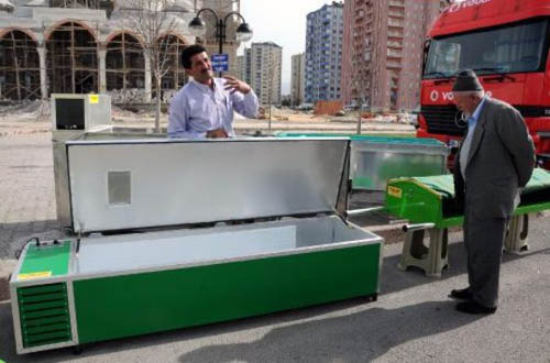 Seri olarak üretilen klimalı ve taşıması kolay hafif tabutların yanı sıra no-frost özellikle çift cenaze kapasiteli yıkamalı kefenleme tablalı morglar 1500 TL'den, gasilhaneler için kromlu plastikli teneşirler de bin 500 TL'den satışa çıkarılıyor.