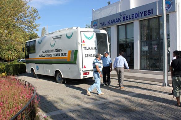 Muğla İli Bodrum İlçesi Yalıkavak Belediyesi önüne gelen aracı vatandaşlar ve belediye çalışanları inceledi. Aracın vatandaşların ihtiyaçlarını karşılayacağını ifade eden belediye yetkilileri, “ cenazeler bu araç içerisinde yıkanıp muhafaza edilebilecek” dedi.