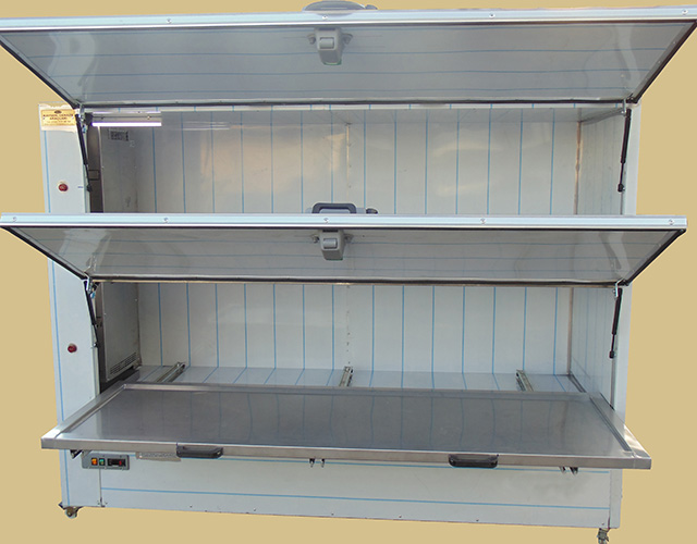 230X65X40 cm ebatlarında, dijital termostatlı yaklaşık 70 kg ağırlığında, gerekirse cenazeleri evlerinde odaların, içinde beklemesine imkân sunan mobil morg dur.220 V ile çalışan cihaz gerekirse invertör vasıtasıyla araçlarda kullanılabilir. Gasil haneler için tek kapaklı tek motorlu üzeri teneşirli No-frost özellikli yapıldığı gibi, ayrı ayrı motorlu, müstakil soğutmalı iki cenaze kapasiteli morg, üç cenaze kapasiteli morg dört cenaze kapasiteli veya çoklu olarak ta yapılmaktadır.