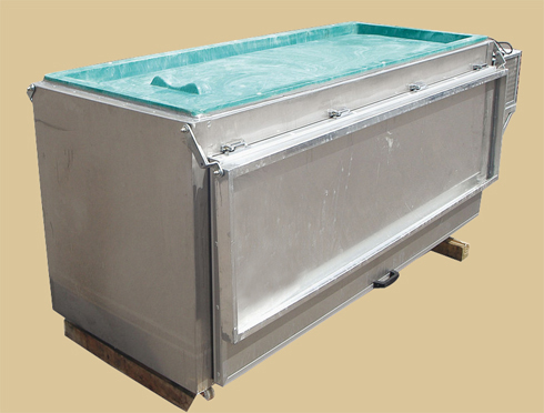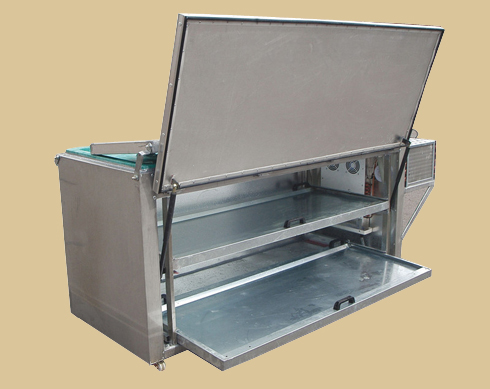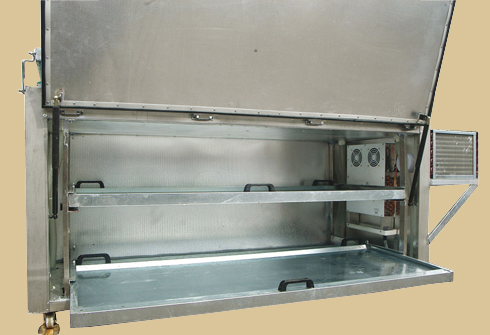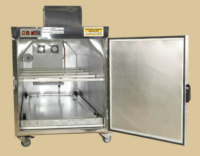 230X65X40 cm ebatlarında, dijital termostatlı yaklaşık 70 kg ağırlığında, gerekirse cenazeleri evlerinde odaların, içinde beklemesine imkân sunan mobil morg dur.220 V ile çalışan cihaz gerekirse invertör vasıtasıyla araçlarda kullanılabilir. Gasil haneler için tek kapaklı tek motorlu üzeri teneşirli No-frost özellikli yapıldığı gibi, ayrı ayrı motorlu, müstakil soğutmalı iki cenaze kapasiteli morg, üç cenaze kapasiteli morg dört cenaze kapasiteli veya çoklu olarak ta yapılmaktadır.