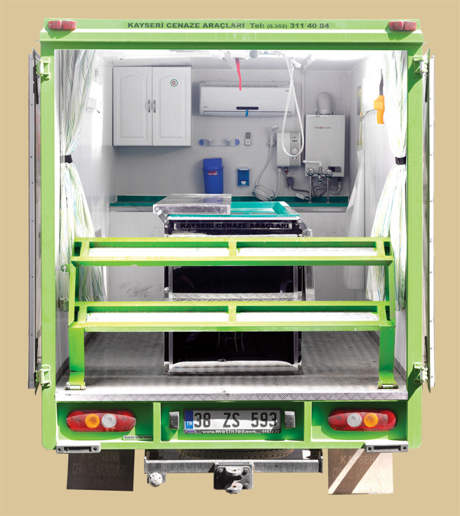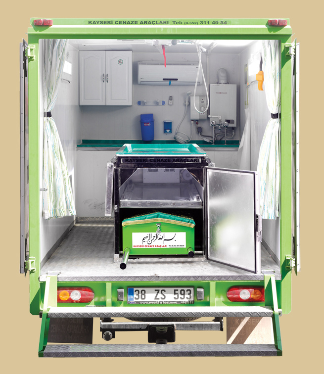 Cenaze yıkama ve cenaze nakil araçları, panelvan araç içi veya kamyon -kamyonet üzerlerine yapılan kabin içinde, morglu, morgsuz, elektrikli ve LPG’li olmak üzere çift şofbenli, temiz-atık su depolu gerekli su ve elektrik tesisatlı olarak yapılmaktadır. Cenaze aracındaki morg hem hareket halinde soğutmalı (12 V - 24 V)hem de motor stop halindeyken soğutma özelliği olabilmektedir.