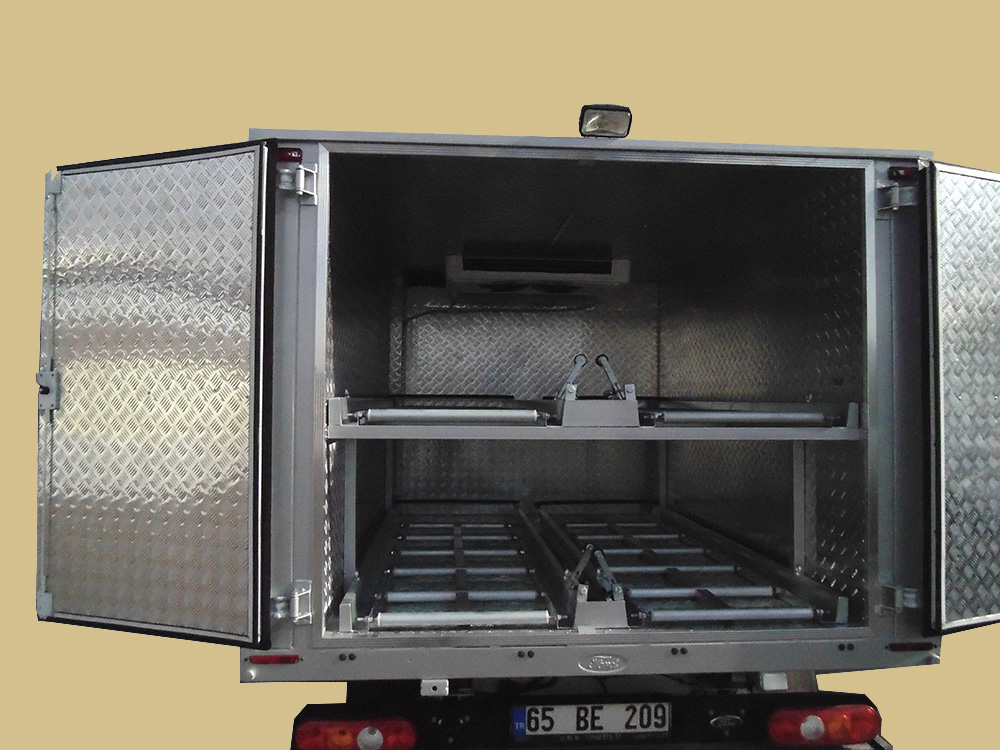 Cenaze nakil araçları; Panelvan araç içine, Pikap araç üzerine ya da Merasim Tip yapılmaktadır. Cenaze nakil araçları iki, üç veya dört cenaze taşıma kapasiteli olabilir. Cenaze nakil aracı, soğutuculu veya soğutucusuz olabilir. Soğutuculu araçlar bir saat ve daha uzak mesafede cenazenin nakli söz konusu ise uygundur.